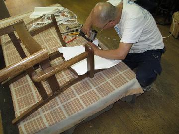 ダイニングチェアーの張替です。 ここからまず、生地を剥していきます。