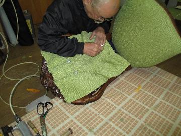剥し終わりましたら、クッション(ウレタン)を交換し、 生地を張っていきます。