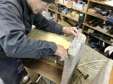 生地を裁断中です♪ この後の縫製中と張替え作業中の写真が撮れずでした…