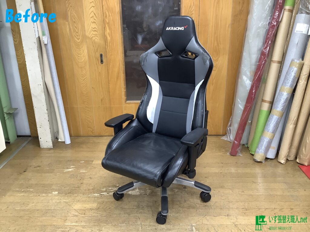 ゲーミングチェア背面張替え 張替え前・張替え後|椅子張替えならいす張替え職人.netへ
