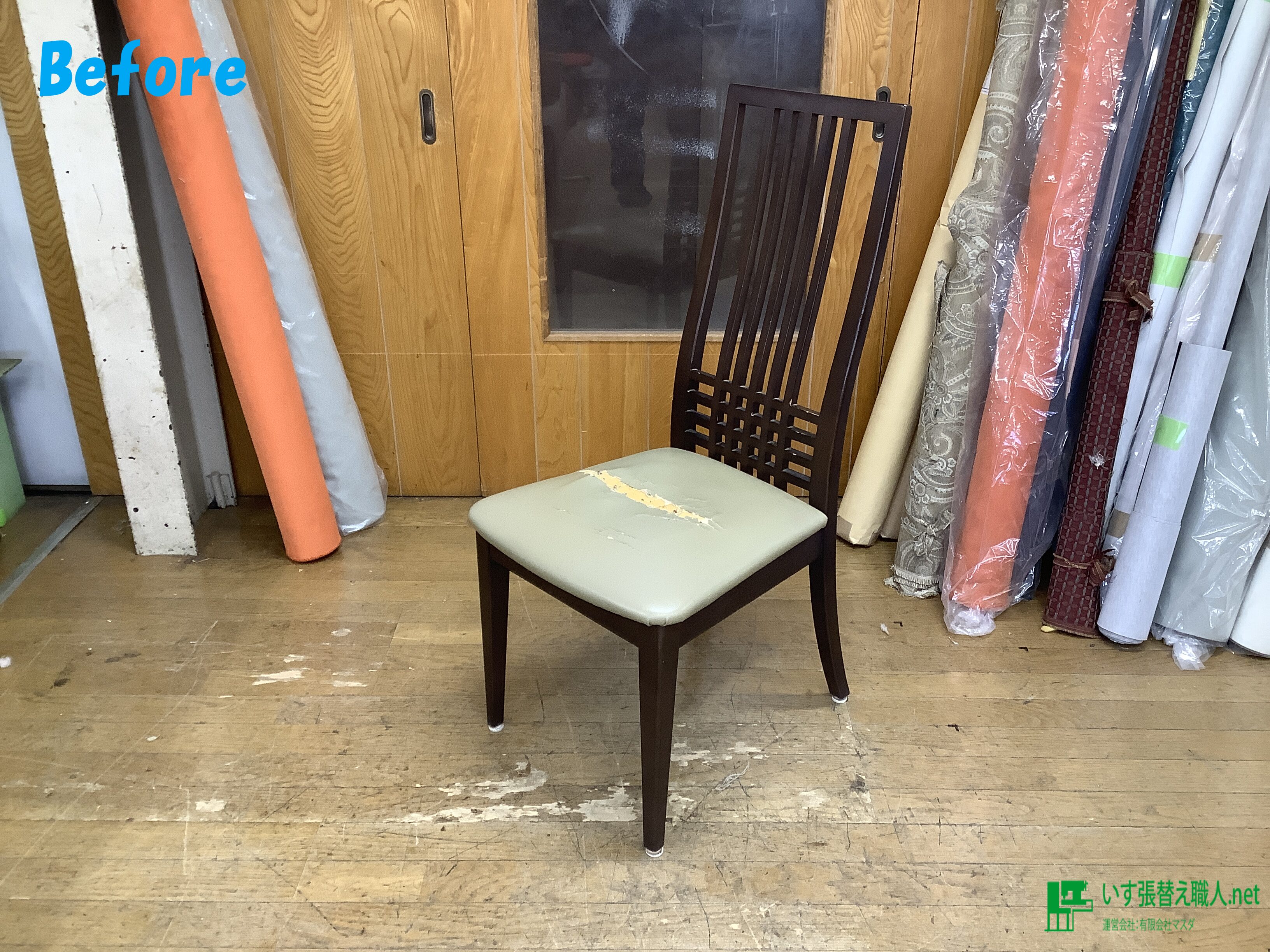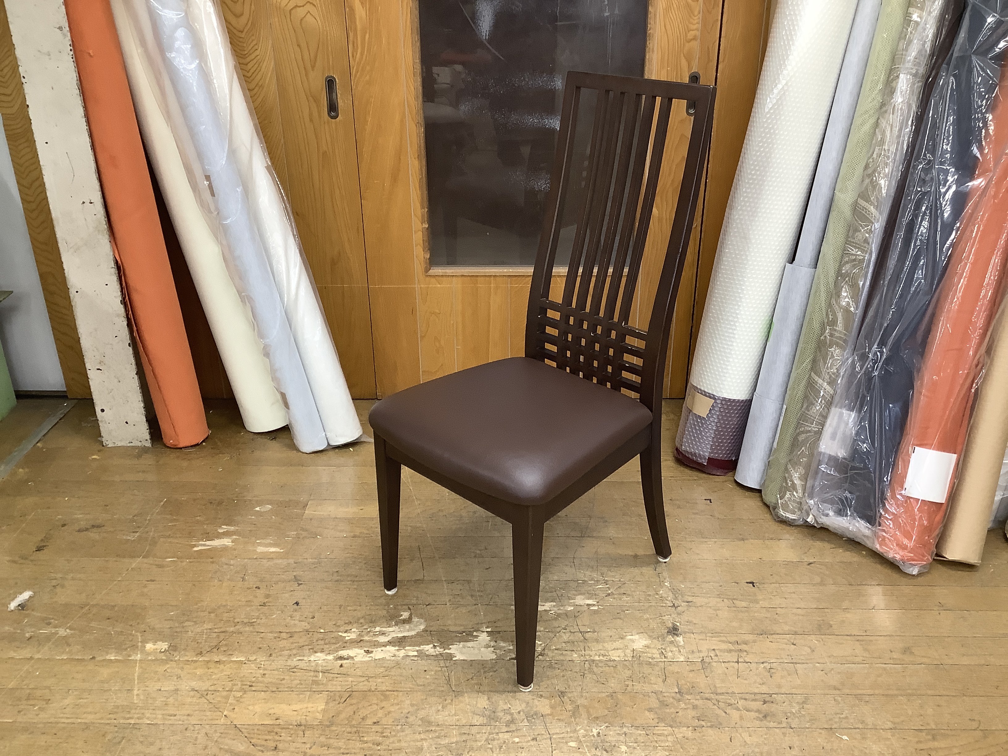 ダイニングチェア座面張替え後です♪ 生地は、シンコール、オールマイティ(合皮)の茶系になります。