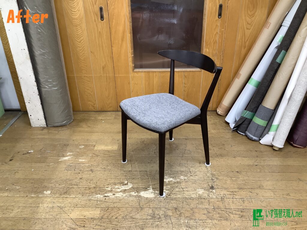 ダイニングチェア張替え後です♪ 生地は、シンコール、ベスパ(布)のグレー系になります。