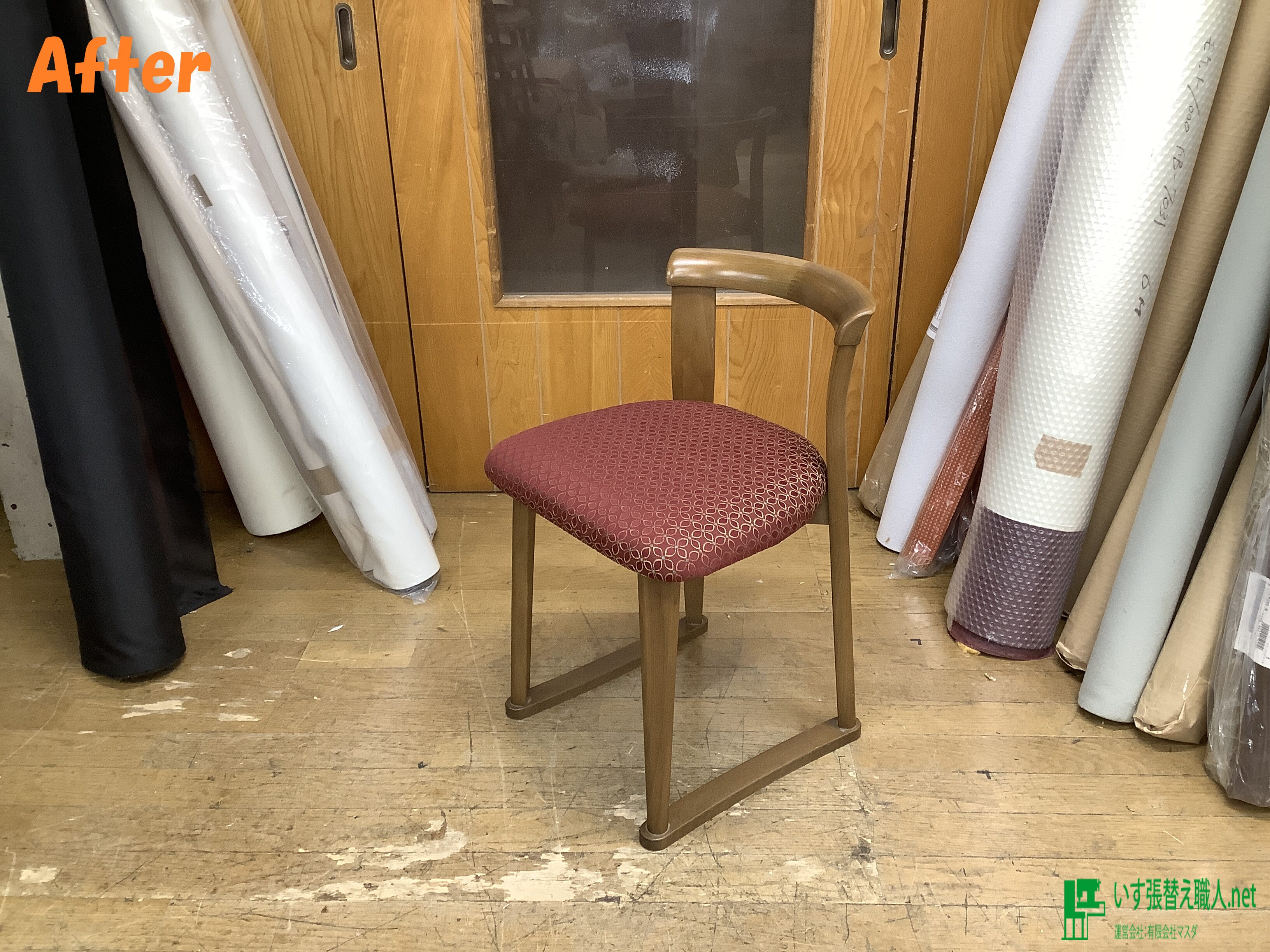 ドレッサーチェア張替え後です♪ 生地は、サンゲツ、ロイヤルクワトロ(布)の赤系になります。