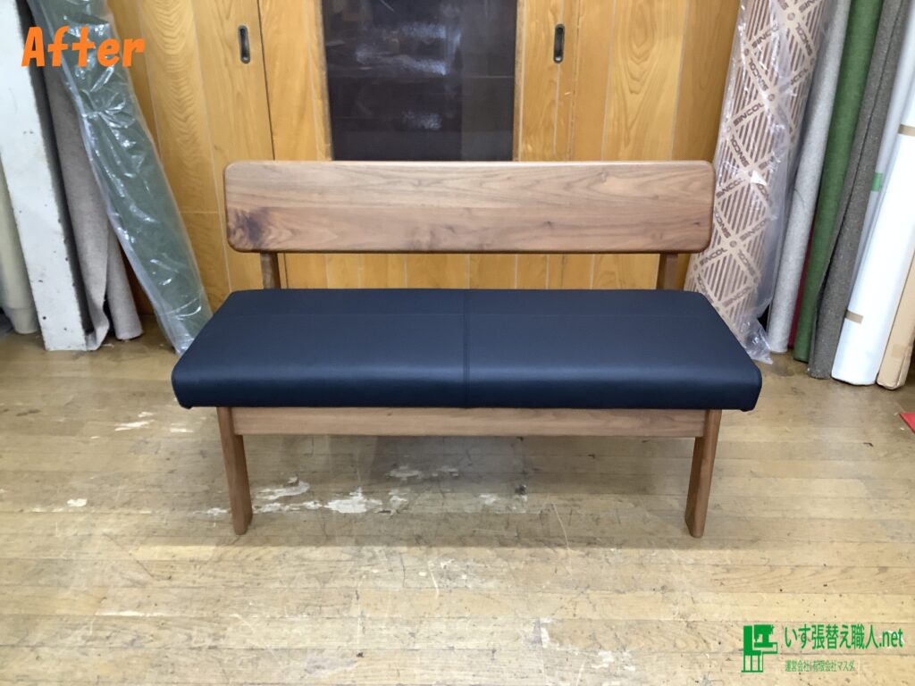 ベンチ座面張替え後です♪ 生地は、シンコール、ゼラファイト・プロ(合皮)の黒系になります。