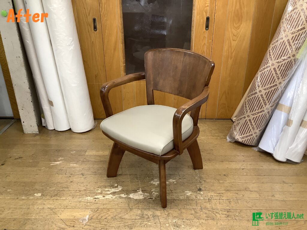 回転イス張替え後です♪ 生地は、シンコール、オールマイティ(合皮)のベージュ系になります。