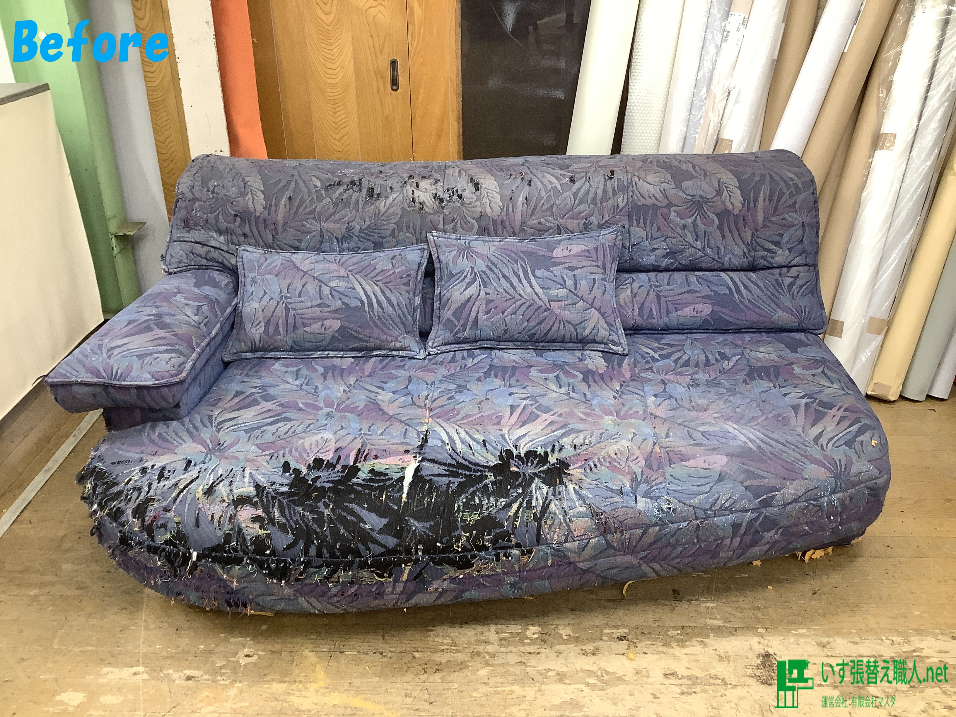 3人掛けソファ張替え前です♪