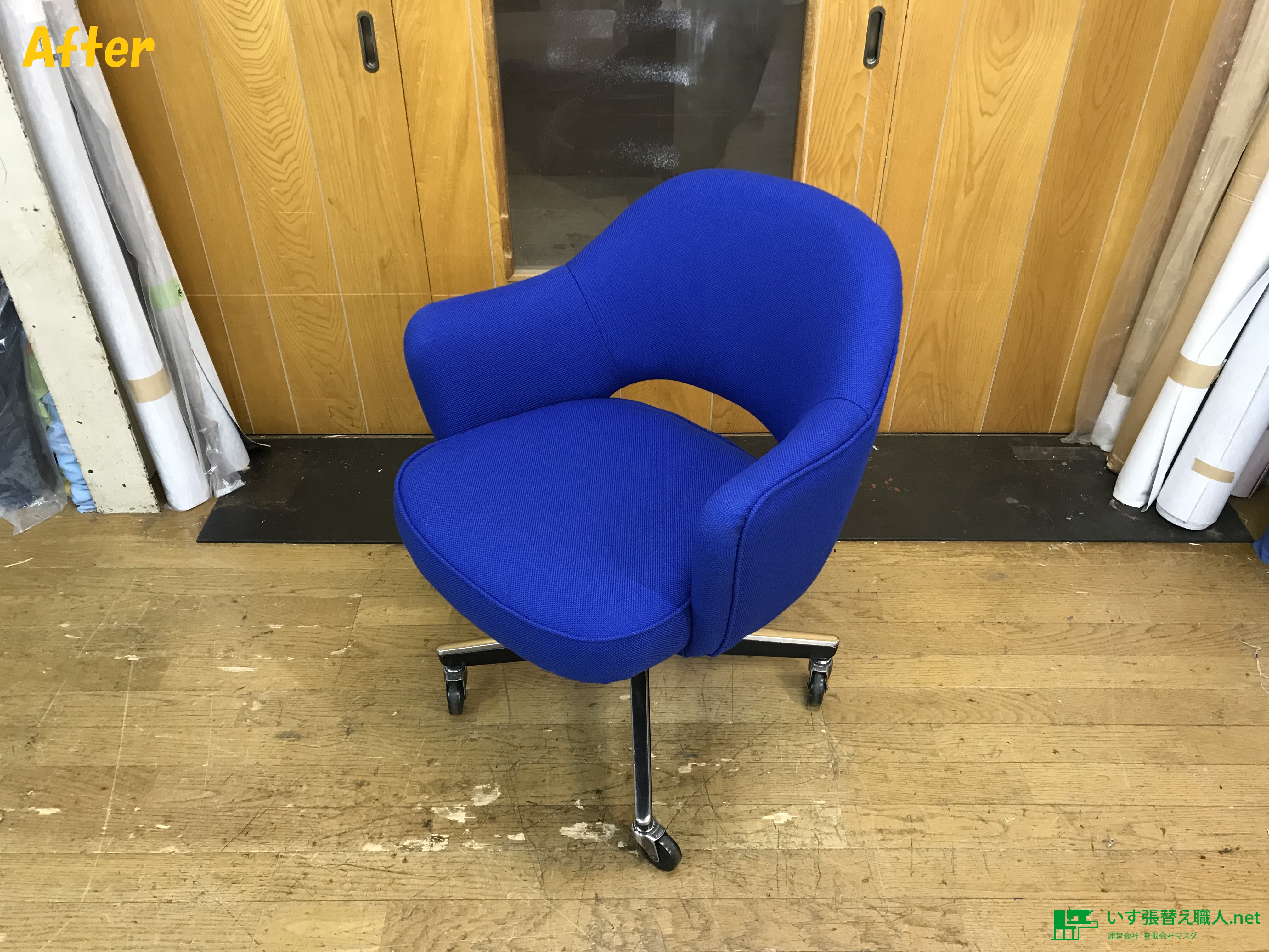 knoll社製デスクチェア張替え張替え後です♪ 生地はリバコ、NC(布)の青系になります♪